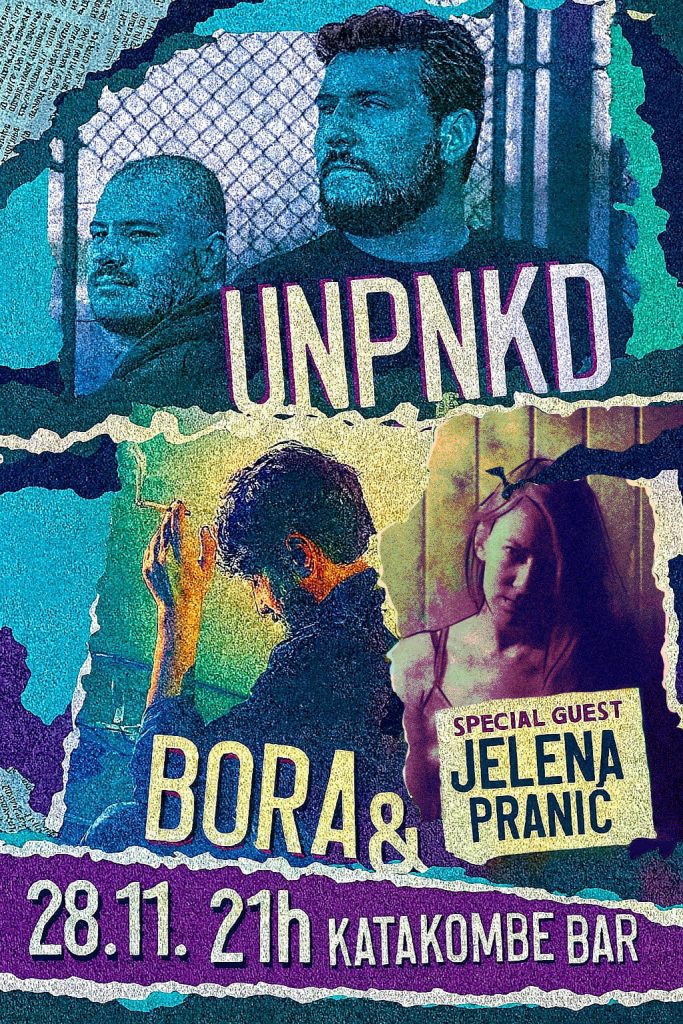 Akustični duo UNPNKD iz Smederevske Palanke, koji čine pevač Radoje Đurđević i gitarista Srđan Milovanović, kao i kantautor Stefan Bogosavljević Bora iz Despotovca, nastupiće u petak, 28. novembra od 21 čas, u Beogradu, u baru Katakombe (Knez Miletina 41), dok će im se kantautorka Jelena Pranić pridružiti kao specijalni gost.