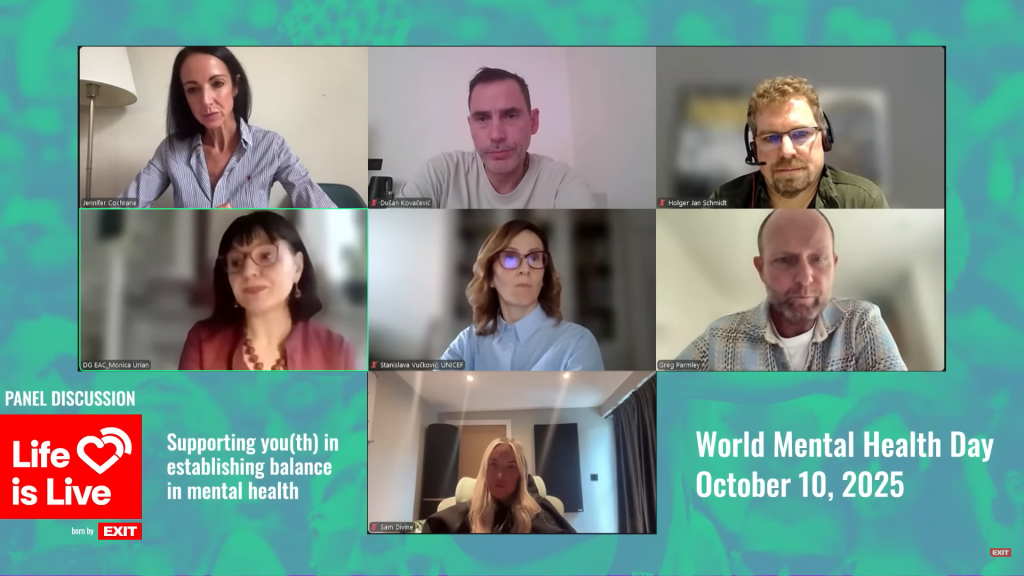 Na Svetski dan mentalnog zdravlja, 10. oktobra, EXIT je u saradnji sa UNICEF-om i krovnom evropskom festivalskom organizacijom YOUROPE realizovao međunarodni panel „Life is Live – Živi uživo – podrška mladima u uspostavljanju ravnoteže u mentalnom zdravlju“, posvećen ulozi muzike i kulture u očuvanju mentalnog zdravlja mladih.